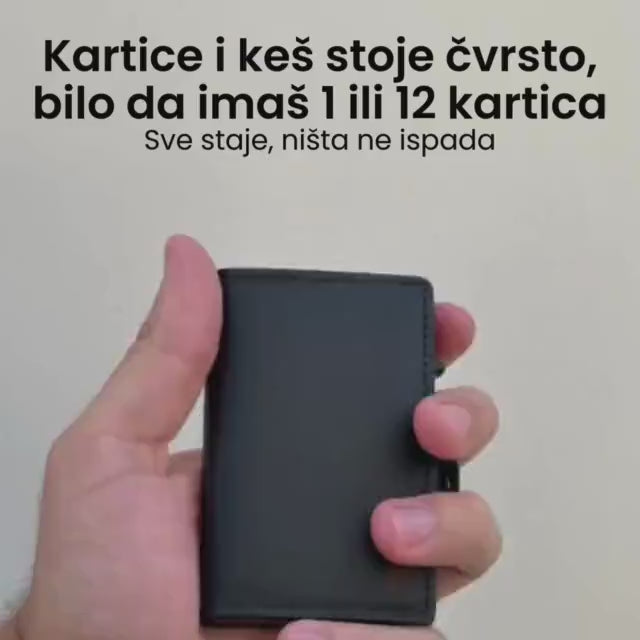 Do 11 kartica nalazi svoje mesto u aluminijumskom mehanizmu koji ih čuva sigurno i omogućava da ih izvučeš na jedan klik.